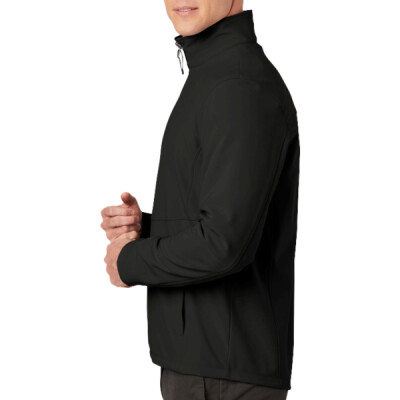 With a subtle mini ripstop texture, this stretch soft shell has double-needle stitching throughout and sleek design lines. The water-resistant film and DWR finish combine to resist wind and rain for weather protection.